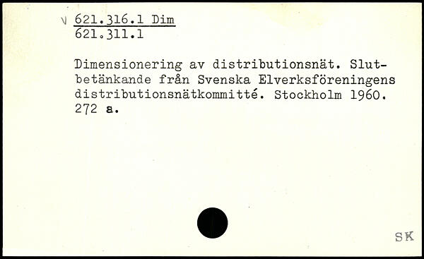 Dimensionering av distributionsnät. Slutbetänkande från Svenska Elverksföreningens distributionsnätkommitté.