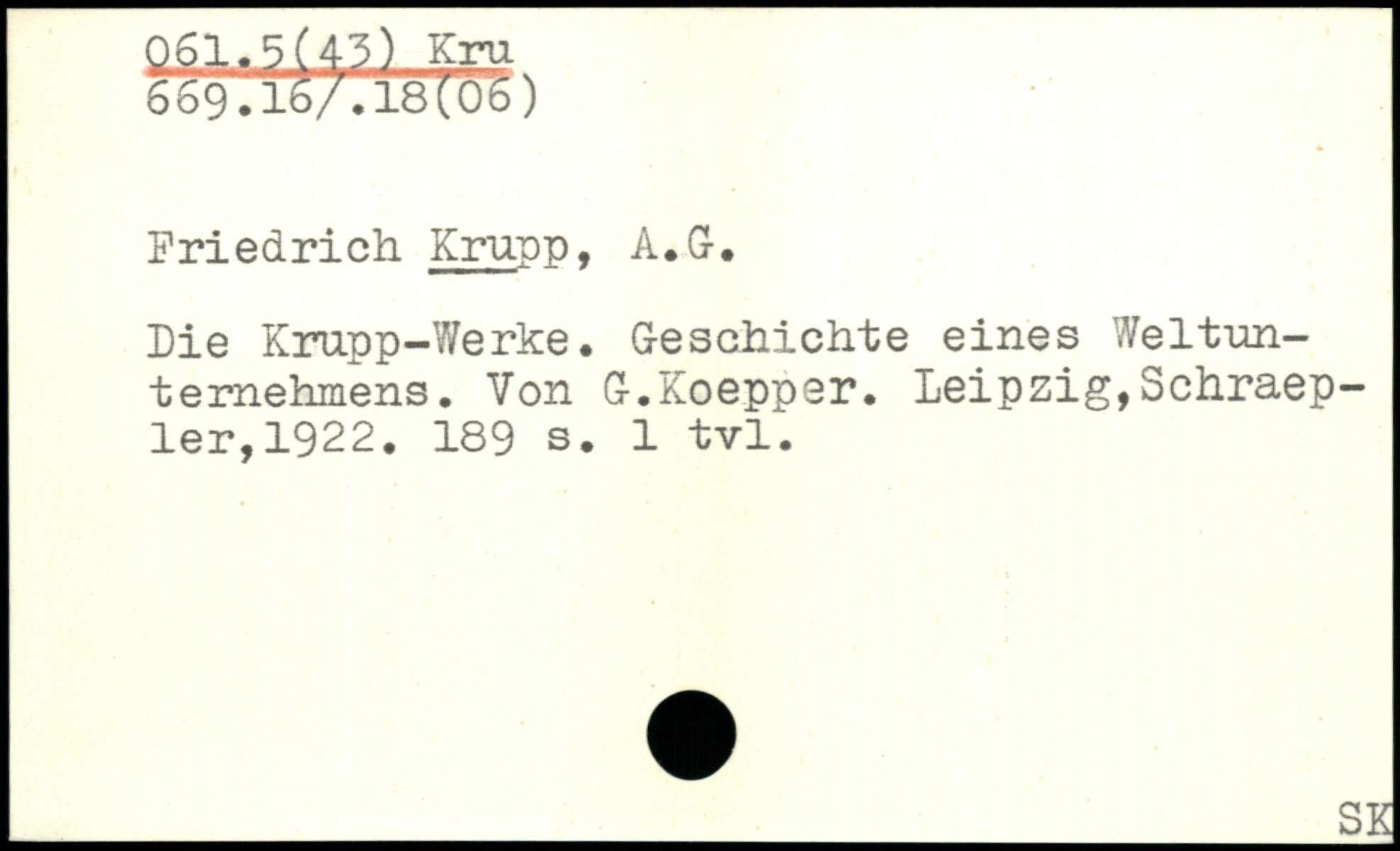 Friedrich Krupp, A.G-. Die Krupp-Werke. Geschichte eines Weltunternehmens. Von G.Koepper.