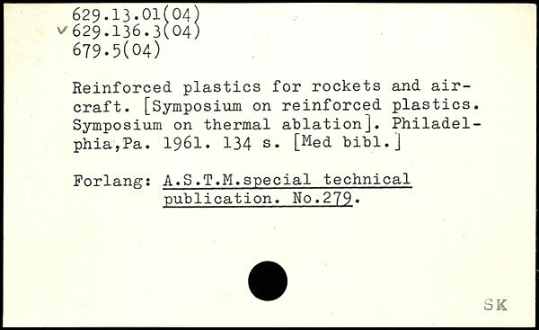 Reinforced, plastics for rockets and. aircraft. [Symposium on reinforced, plastics. Symposium on thermal ablation]. Philadel-phia,Pa. 1961.