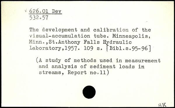 The development and calibration of the visual-accumulation tube. Minneapolis, Minn.,St.Anthony Falls Hydraulic Laboratory,1957.