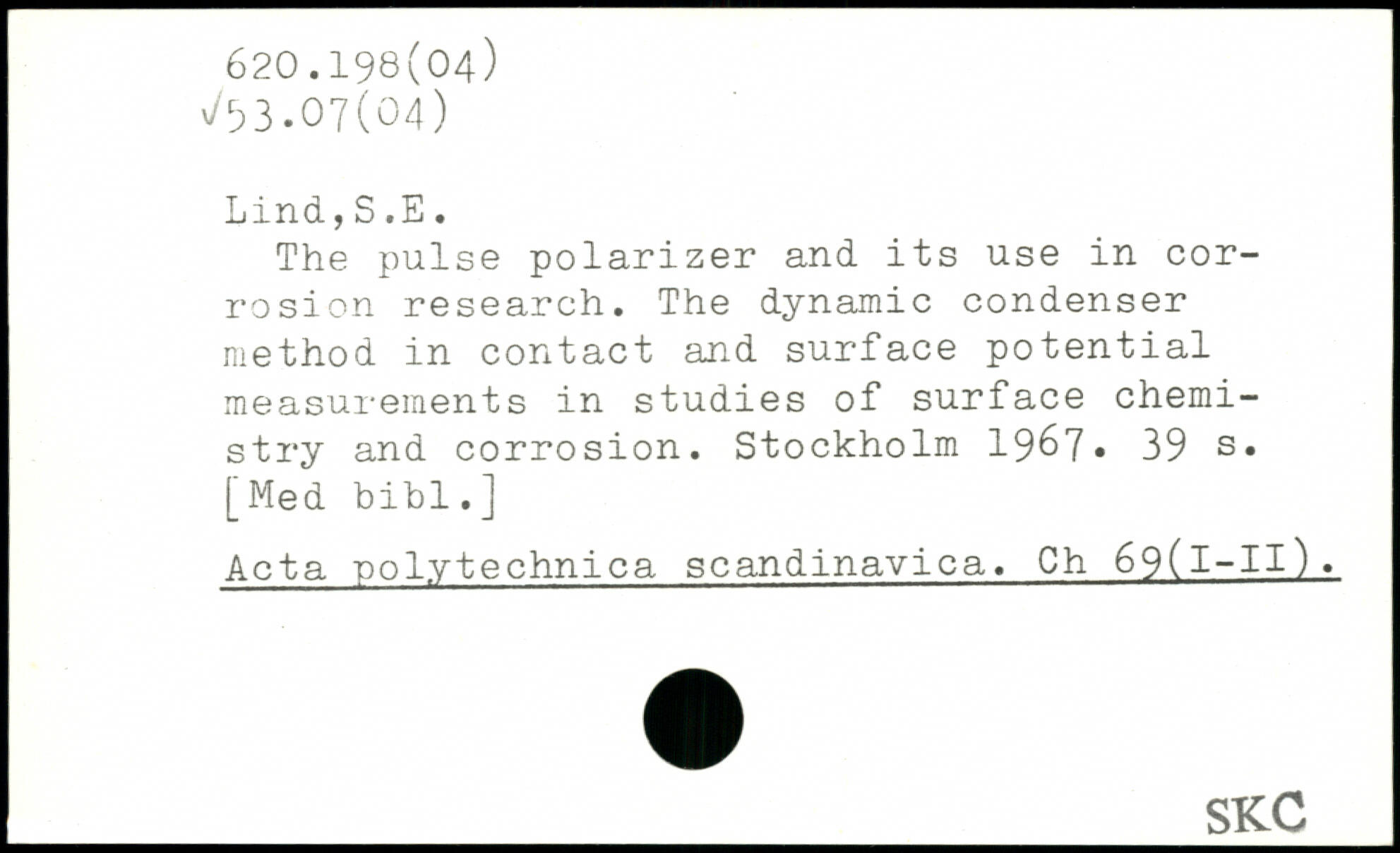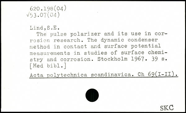 The pulse polarizer and its use in corrosion research. The dynamic condenser method in contact and surface potential measurements in studies of surface chemistry and corrosion.
