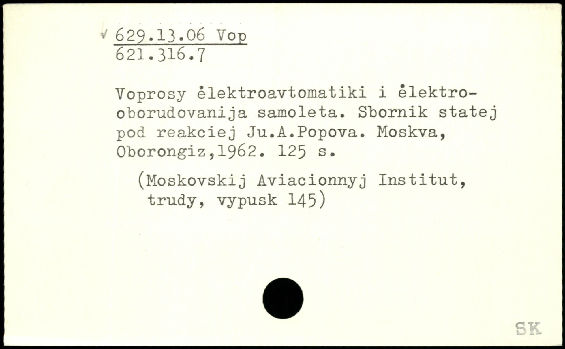 Voprosy êlektroavtomatiki i êlektro-oborudovanija samoleta. Sbornik statej pod reakciej Ju.A.Popova. Moskva, 0borongiz,1962.