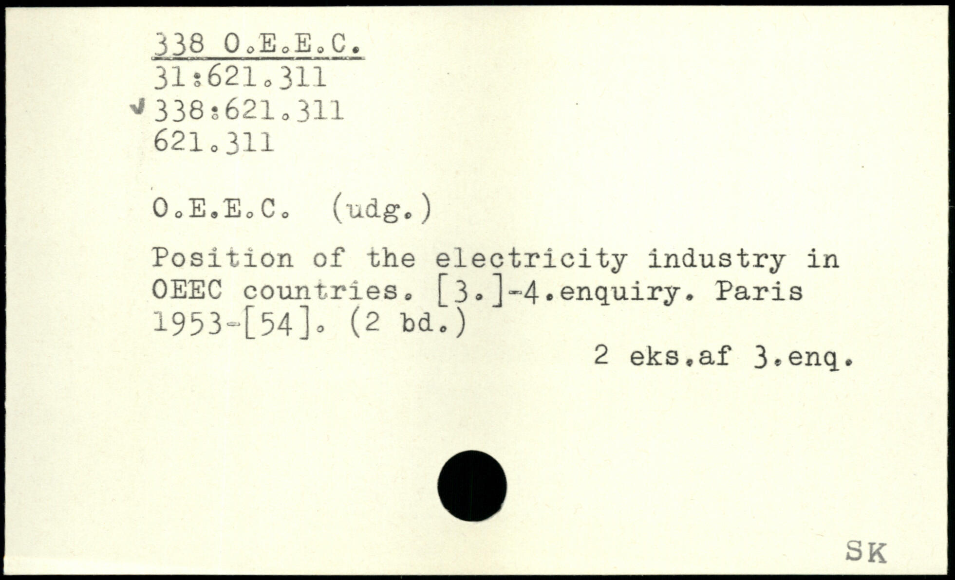 0oE.EoCo (udge) Position of the electricity industry in OEEC countries. [3.]~4.enquiry.