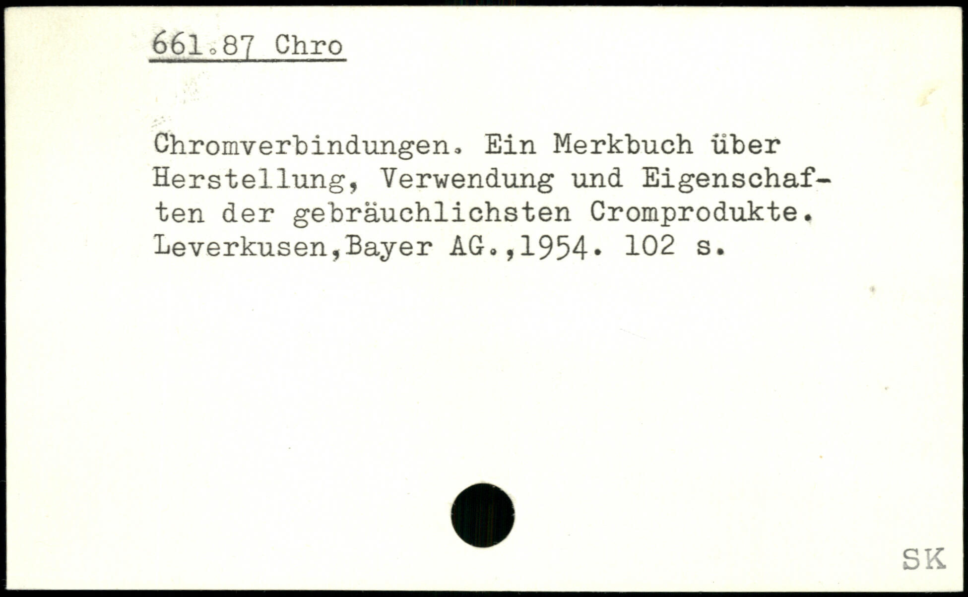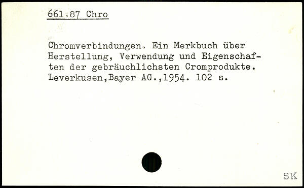 Chromverbindungen, Ein Merkbuch über Herstellung, Verwendung und Eigenschaften der gebräuchlichsten Cromprodukte. Leverkusen,Bayer AG,,1954