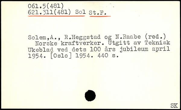 Horske kraftverker. Utgitt av Teknisk Ukeblad ved dets 100 års jubileum april 1954. [Oslo] 1954.