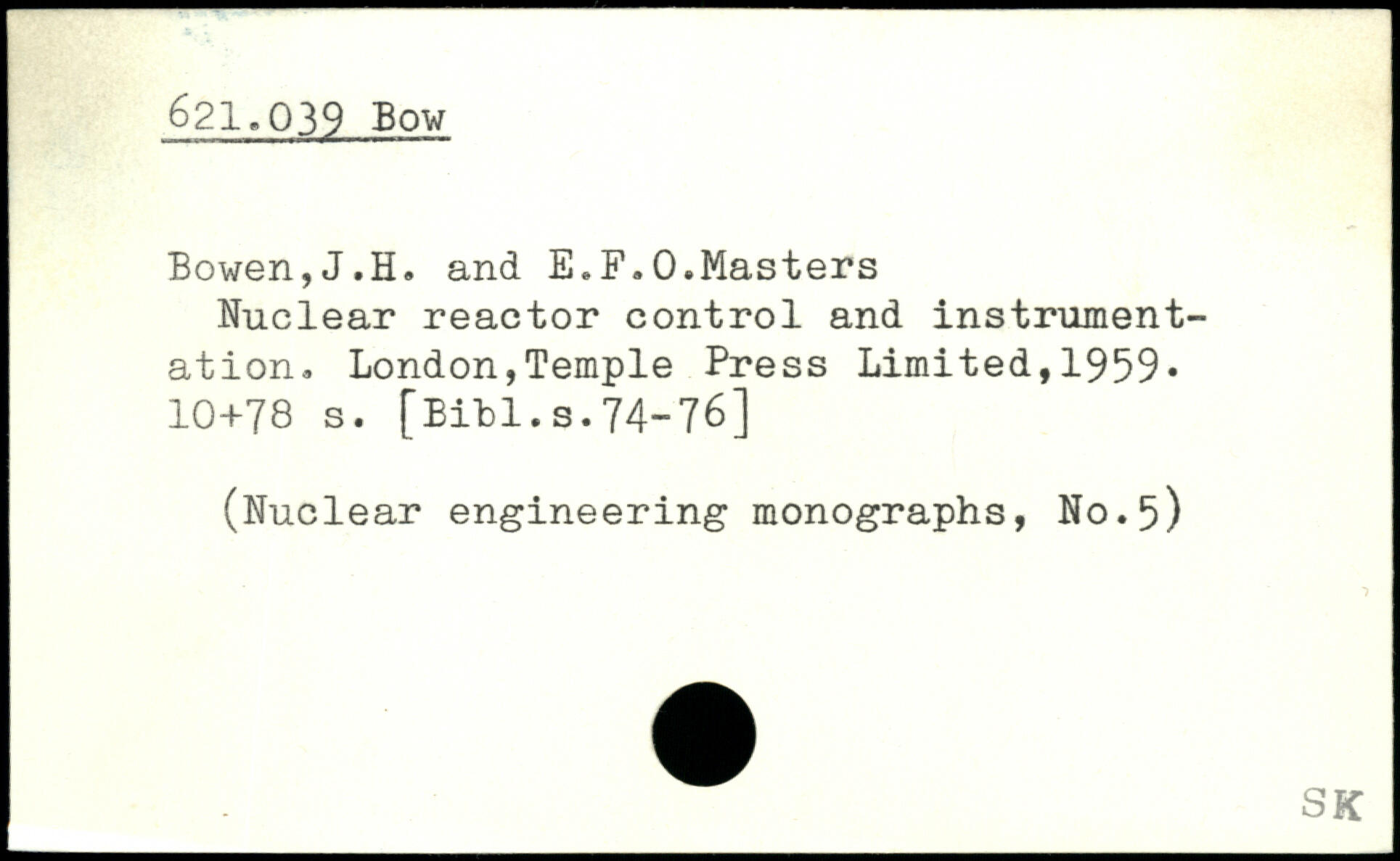 Bowen,J.H. and E.F.0.Masters Nuclear reactor control and instrumentation.