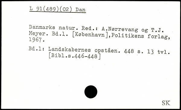 Danmarks natur. Red.: A.Nørrevang og T.J. Meyer. Bd.l.