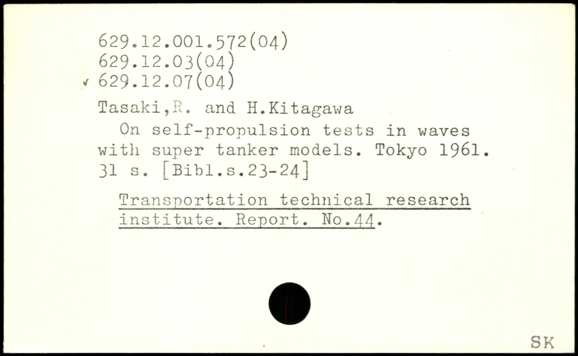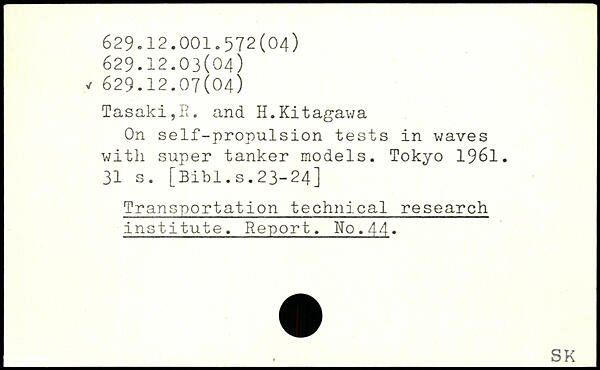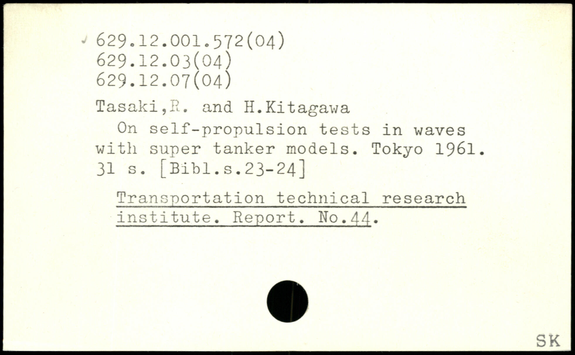 Tasaki,Pt. and H.Kitagawa On self-propulsion tests in waves with super tanker models.