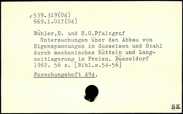 Untersuchungen über den Abbau von Eigenspannungen in Gusseisen und Stahl durch mechanisches Rütteln und Langzeitlagerung im Freien. Düsseldorf 1962.