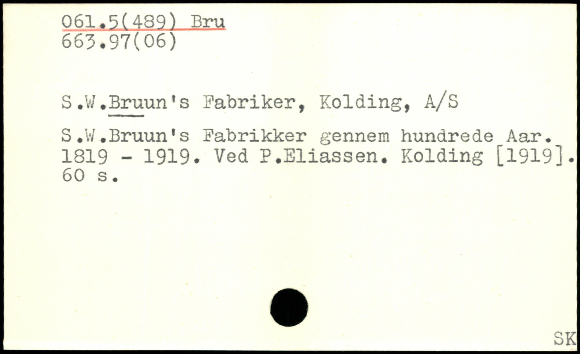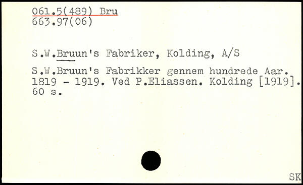 S.W.Bruun.s Fabriker, Kolding, A/S S.W.Bruun.s Fabrikker gennem hundrede Aar. 1819 - 1919. Ved P.Eliassen. Kolding [1919].
