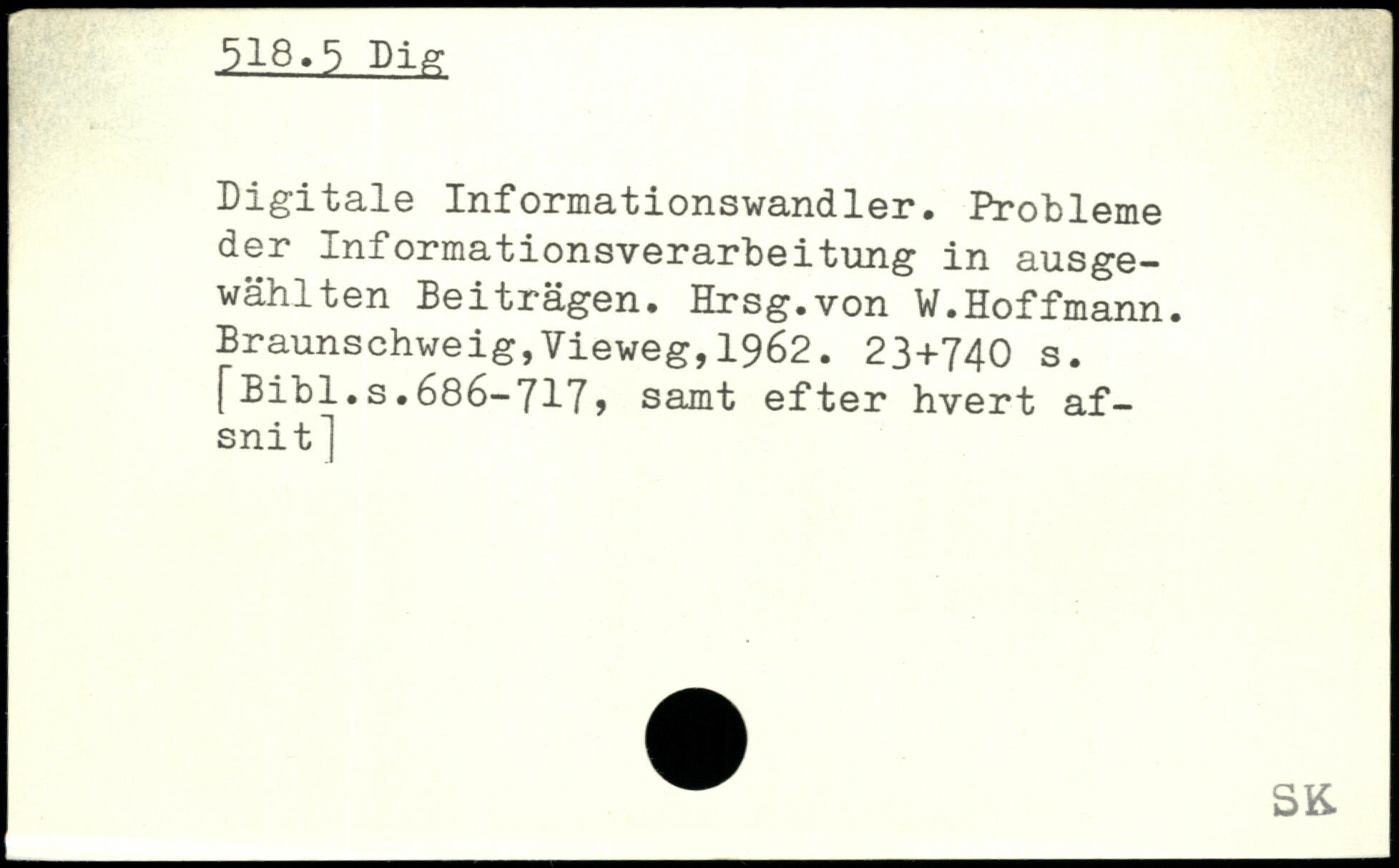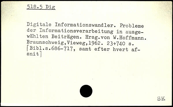 Digitale Informationswandler. Probleme der Informationsverarbeitung in ausgewählten Beiträgen. Hrsg.von W.Hoffmann.