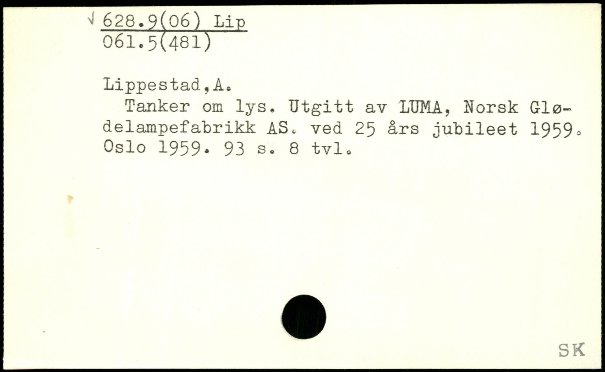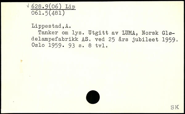 Tanker om lys. Utgitt av LUMA, Norsk Glødelampef abrikk AS. ved 25 års jubileet 1959= Oslo 1959