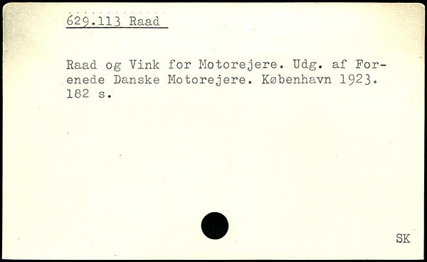 Raad og Vink for Motorejere. Udg. af Forenede Danske Motorejere.