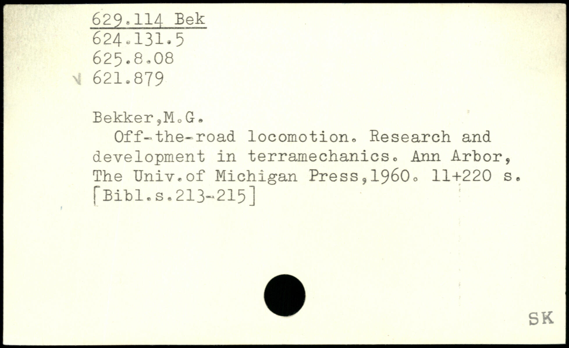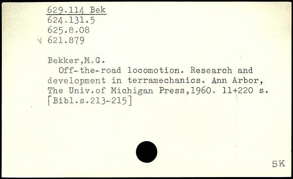 Off-the-road locomotion, Research and development in terramechanics, Ann Arbor, The Univ.of Michigan Press,19600