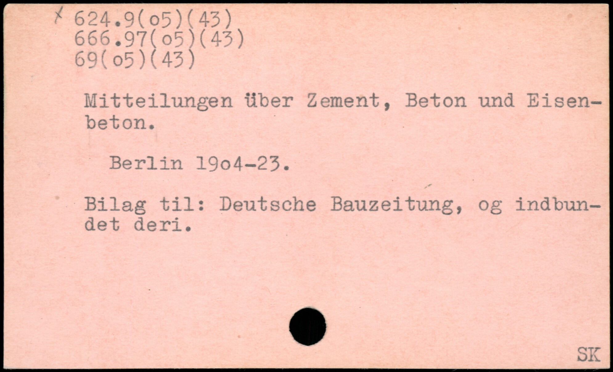 Mitteilungen über Zement, Beton und Eisenbeton. Berlin 19o4-23. Bilag tiis Deutsche Bauzeitung, og indbundet deri.
