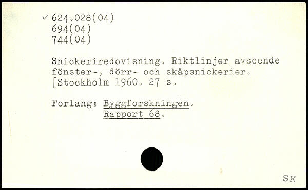 Snickeriredovisningo Riktlinjer avseende fönster-, dörr- och skåpsnickerier