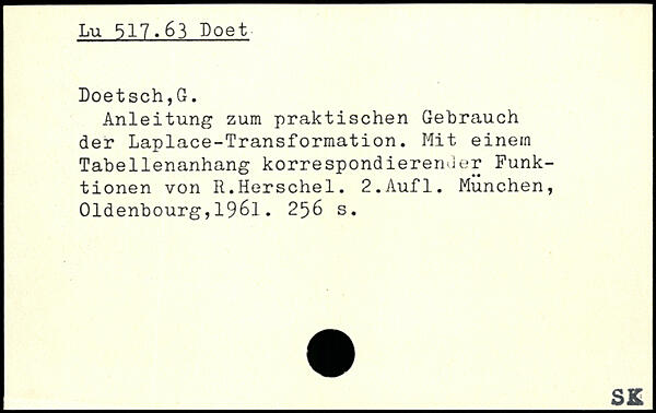 Anleitung zum praktischen Gebrauch der Laplace-Transformation. Mit einem Tabellenanhang korrespondierender Funktionen von R.Herschel.