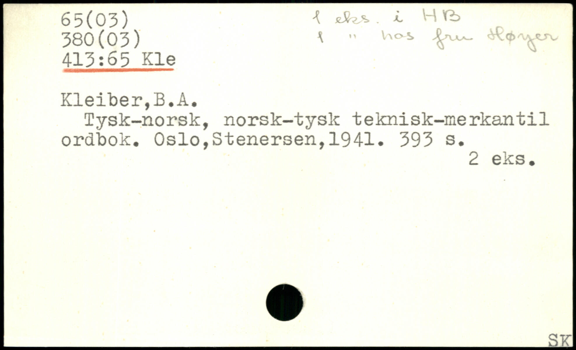 Tysk-norsk, norsk-tysk teknisk-merkantil ordbok.