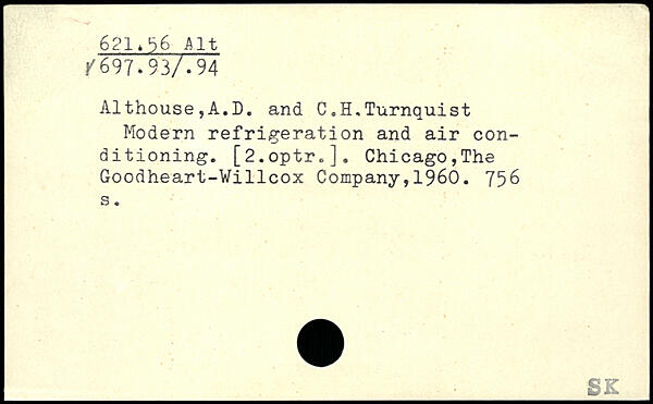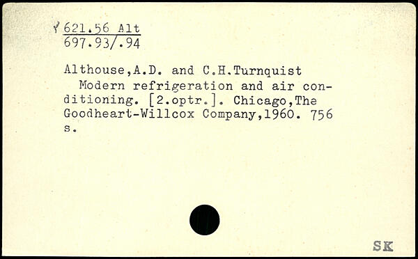 Althouse,A.D. and C.H,Turnquist : Modern refrigeration and air conditioning. [2.optr.].