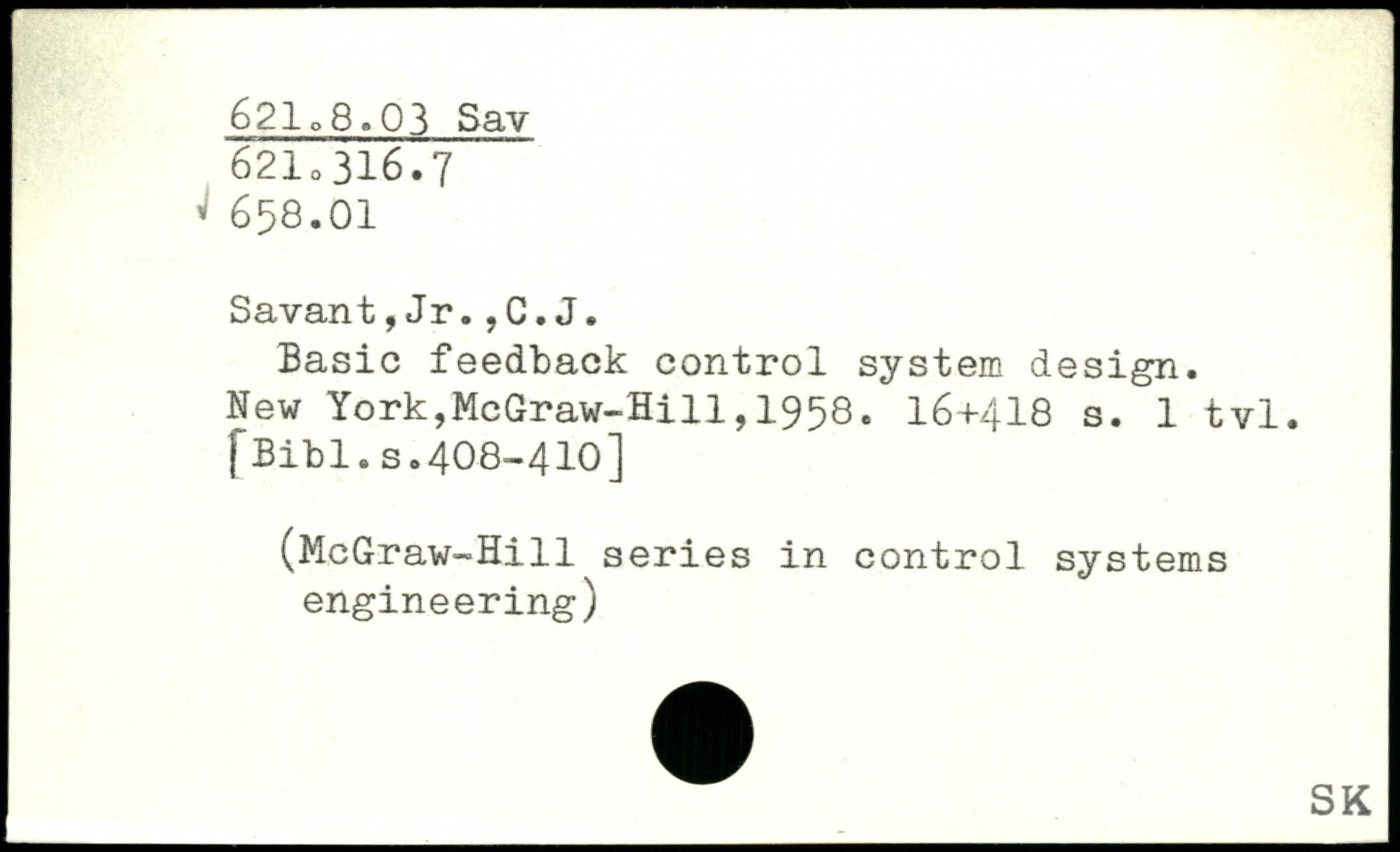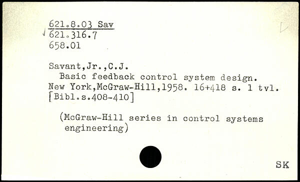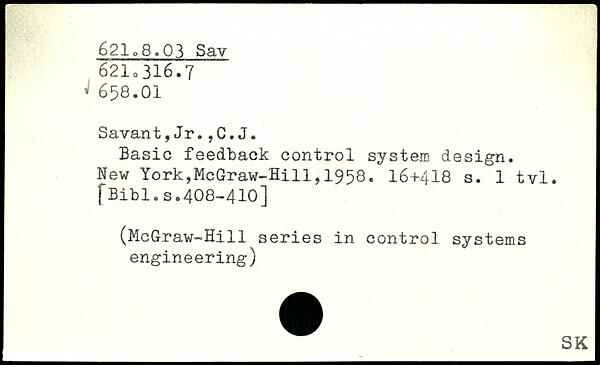 Savant, Jr.,C.J. Basic feedback control system design.