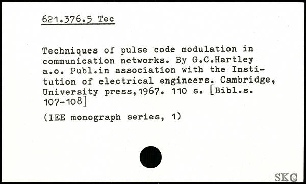 Techniques of pulse code modulation in communication networks. By G.C.Hartley a.o. Publ.in association with the Institution of electrical engineers.