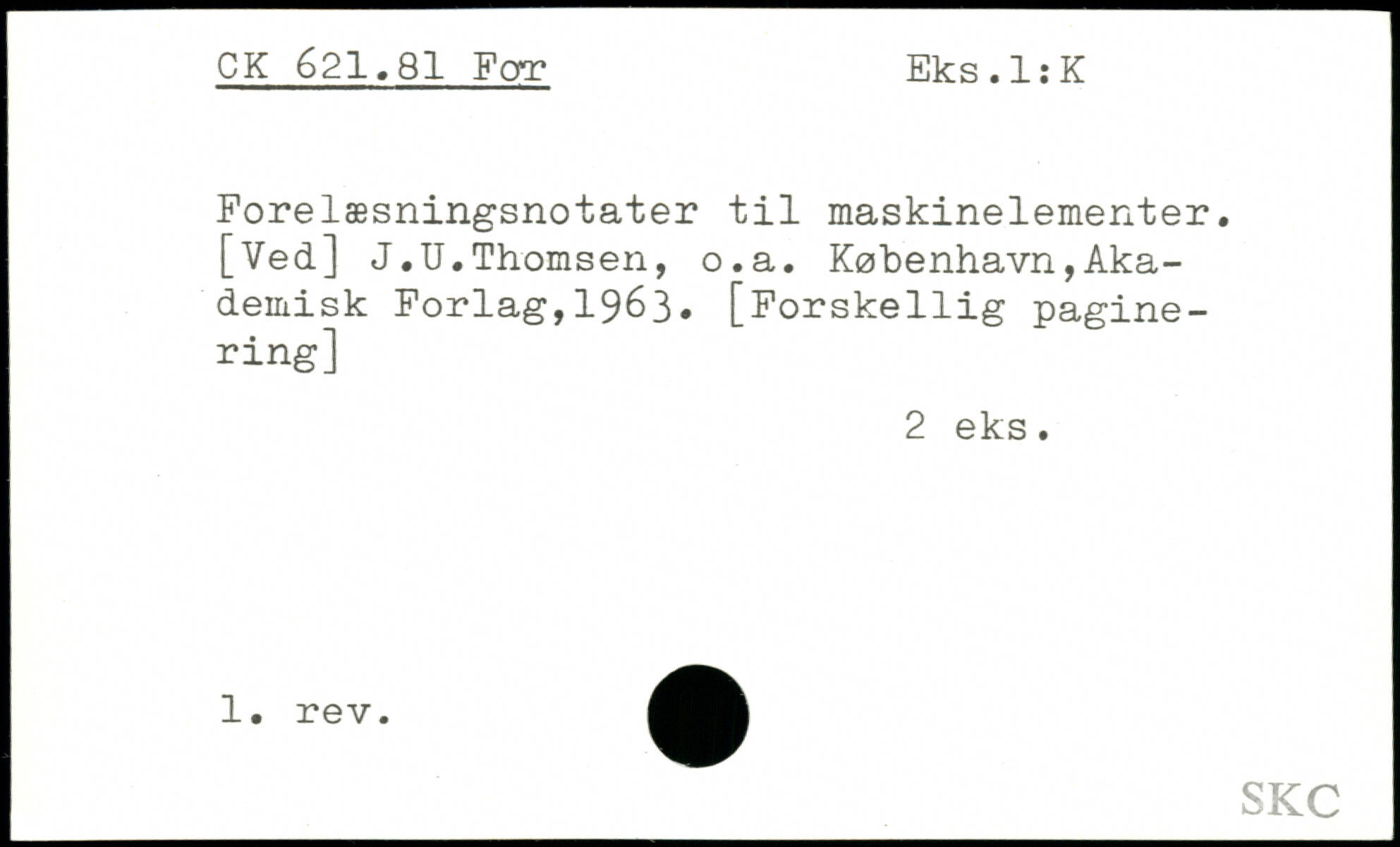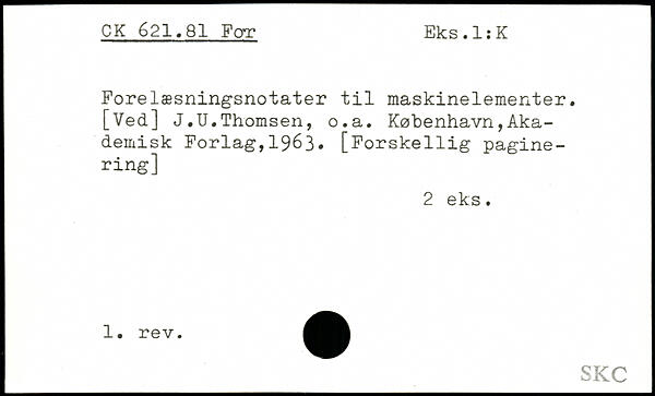 Forelæsningsnotater til maskinelementer. [Ved] J.U.Thomsen, o.a.