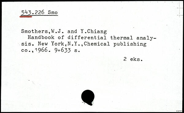 Handbook of differential thermal analysis, New York,N.Y.,Chemical publishing co.,'1966.