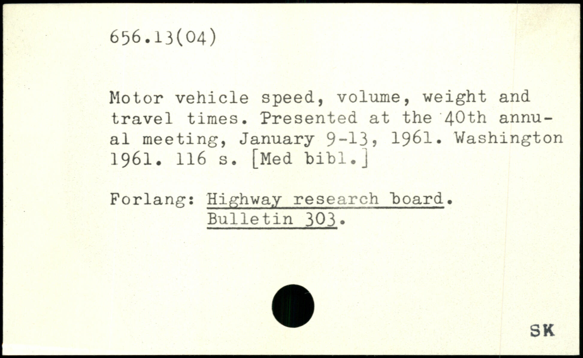 Motor vehicle speed, volume, weight and travel times. Presented at the 40th annual meeting, January 9-13> 1961.