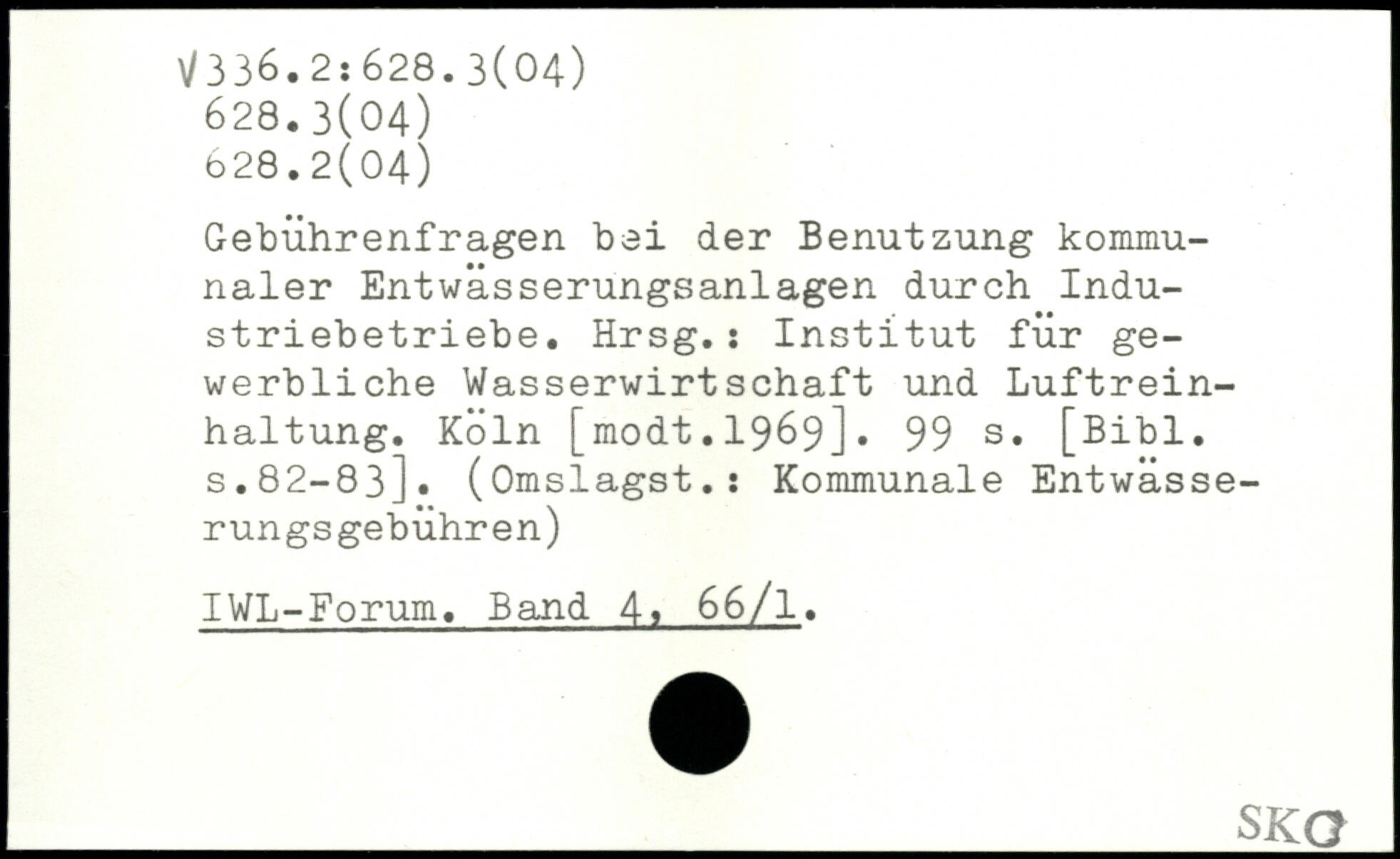 Gebührenfragen bei der Benutzung kommunaler Entwässerungsanlagen durch Industriebetriebe. Hrsg.: Institut für gewerbliche Wasserwirtschaft und Luftreinhaltung. Köln [modt.1969].