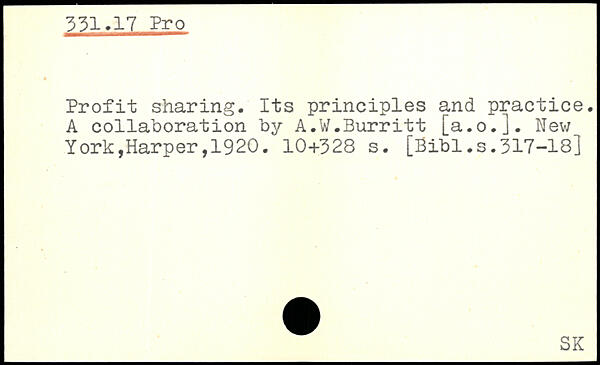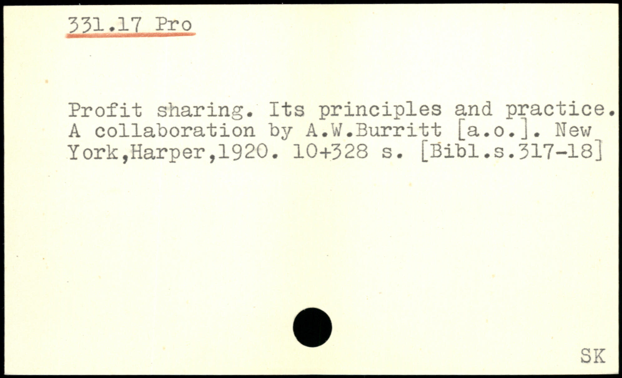 Profit sharing. Its principles and practice. A collaboration by A.W.Burritt [a.o.j.