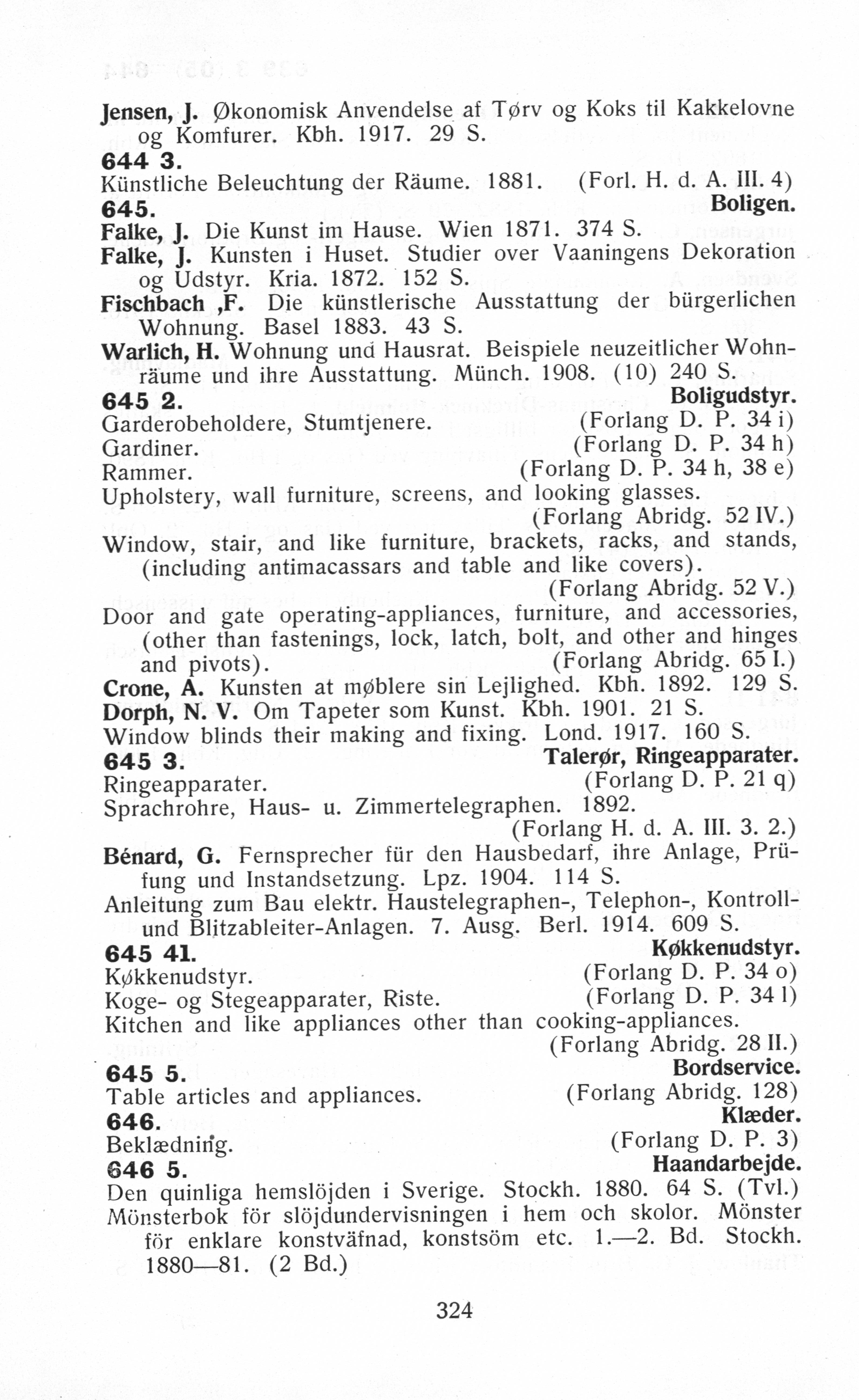 Garderobeholdere, Stumtjenere. Gardiner. Rammer. Upholstery, wall furniture, screens, and looking glasses.