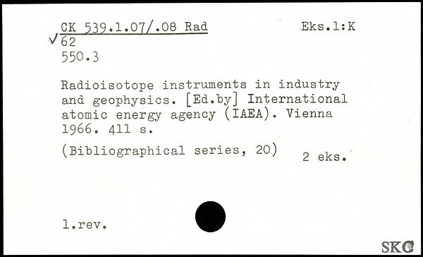 Radioisotope instruments in industry and geophysics. [Ed."by] International atomic energy agency (IAEA). Vienna 1966.