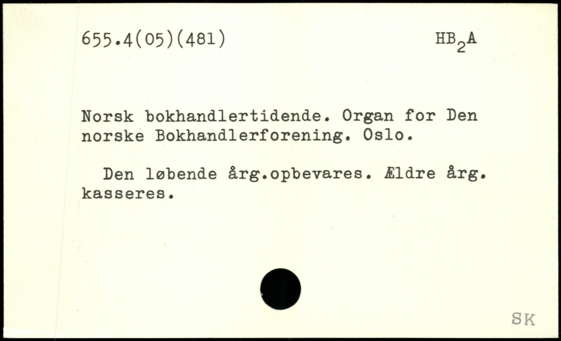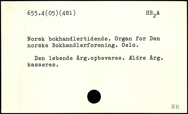 Norsk bokhandlertidende. Organ for Den norske Bokhandlerforening. Oslo. Den løbende årg.opbevares. Ældre årg. kasseres.