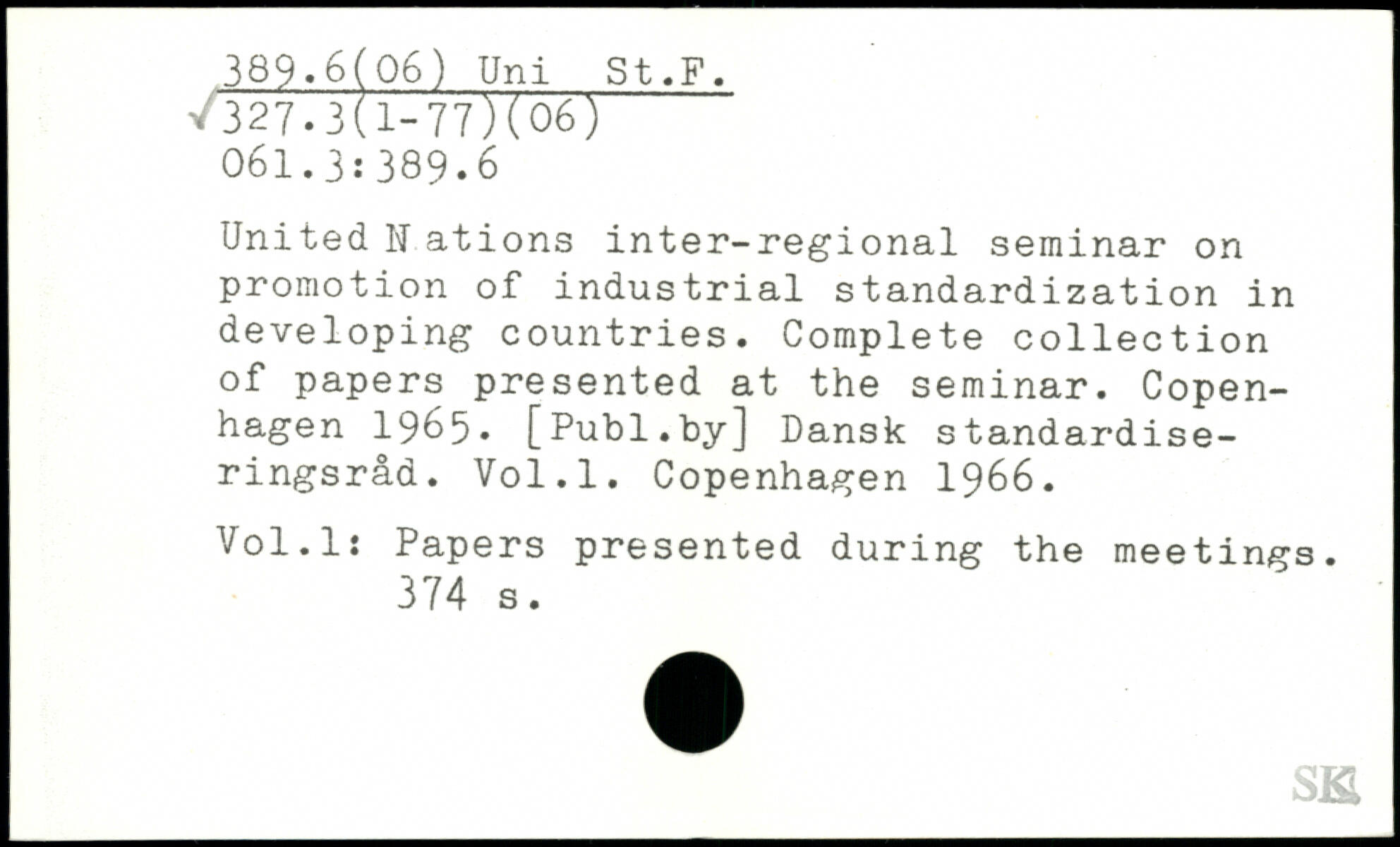 United 11 ations inter-regional seminar on promotion of industrial standardization in developing countries. Complete collection of papers presented at the seminar.