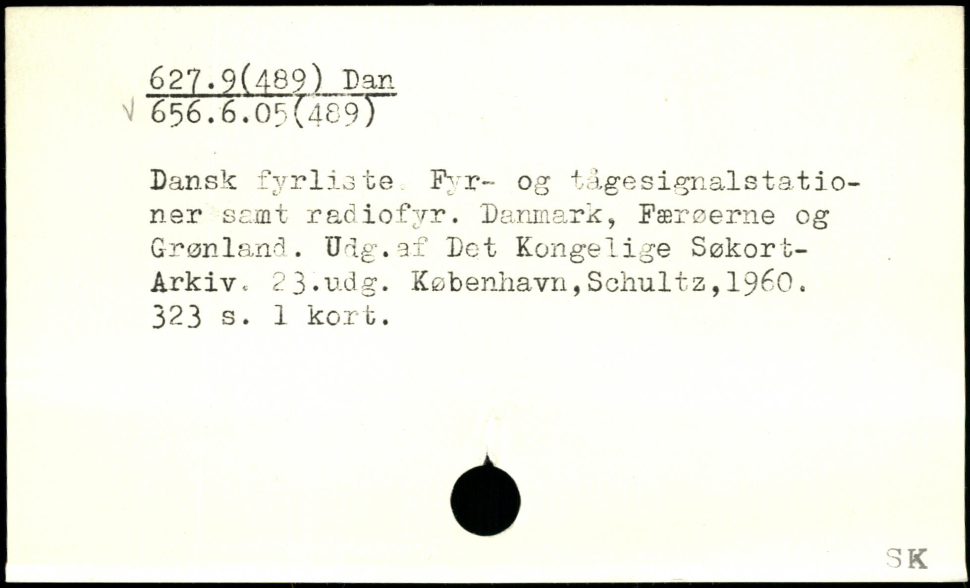 Dansk fyrliste Fyr- og tagesignalstationer samt radiofyr. Danmark, Færøerne og Grønland. Udg.af Dot Kongelige Søkort-Arkiv. 23.ndg.