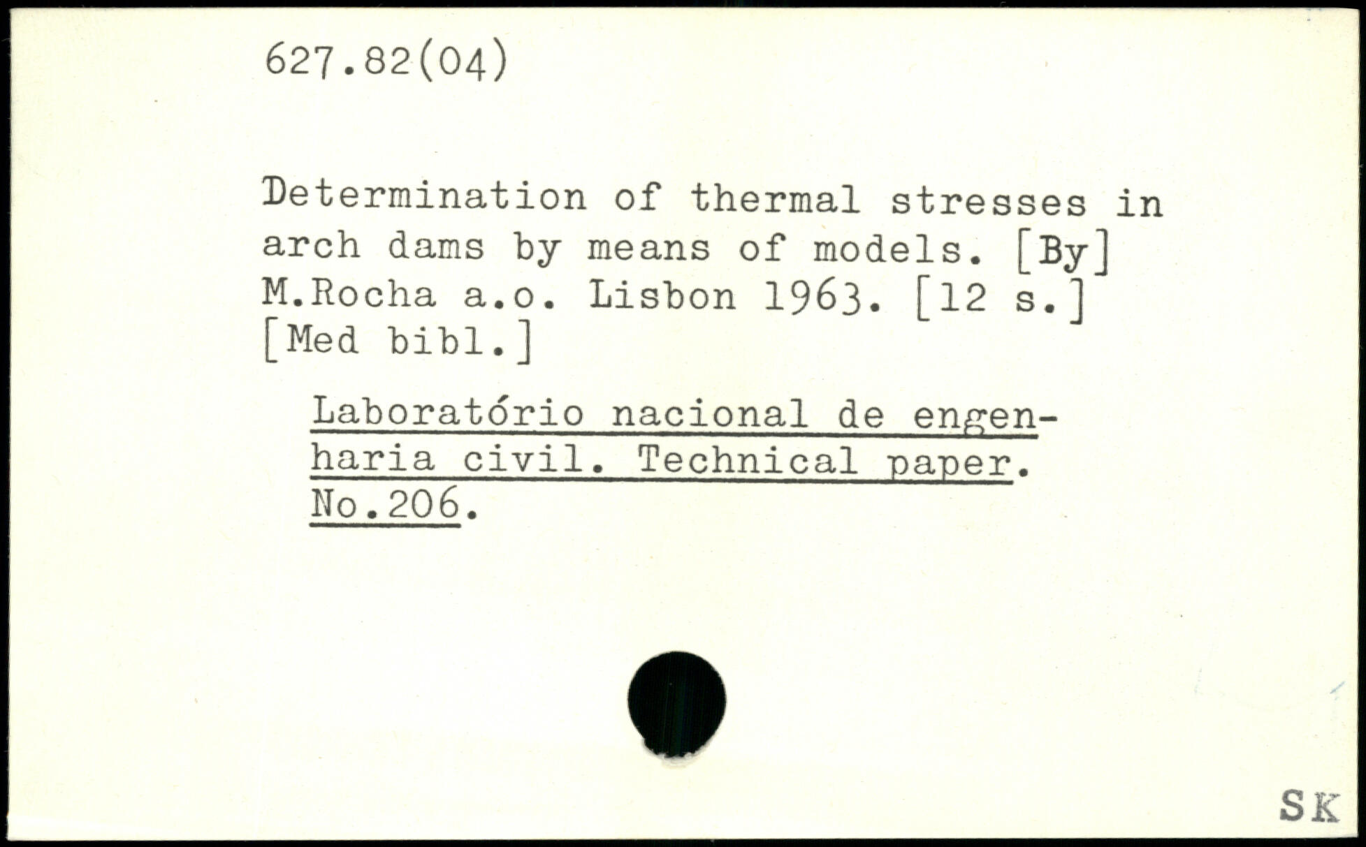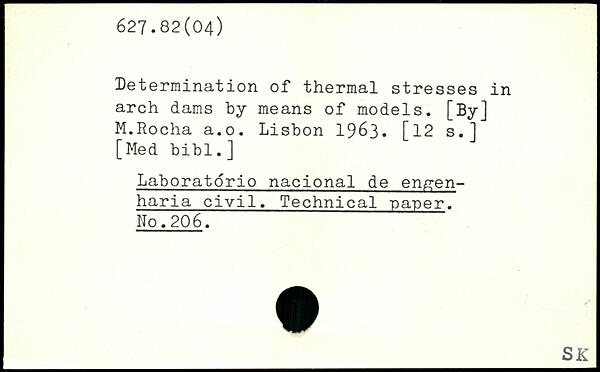 Determination of thermal stresses in arch dams by means of models. [By] M.Rocha a.o. Lisbon 1963. [