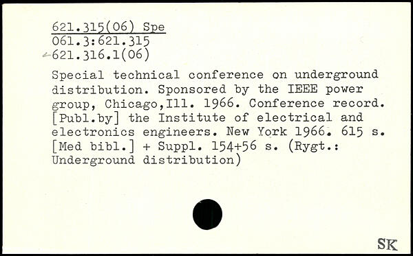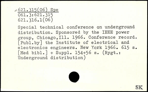 Special technical conference on underground distribution. Sponsored by the IEEE power group, Chicago,111. 1966. Conference record.