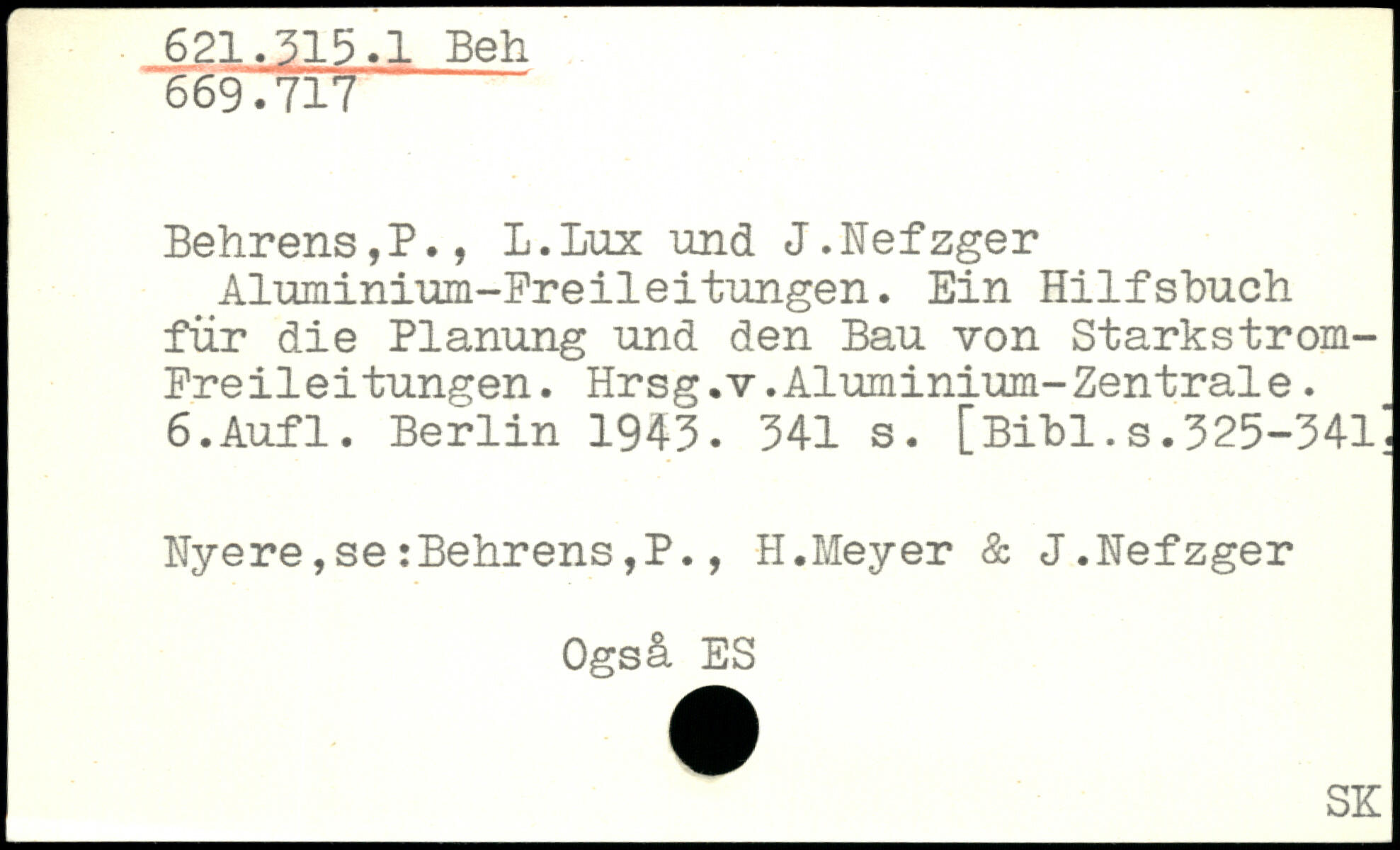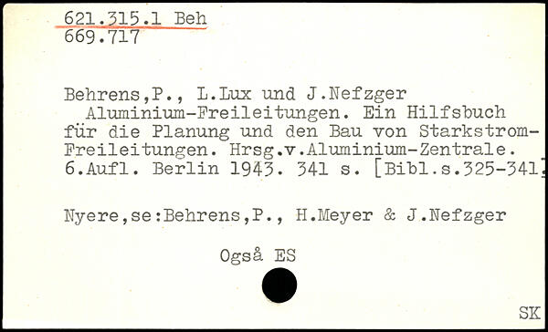 Aluminium-Freileitungen. Ein Hilfsbuch für die Planung und den Bau von Starkstrom-Freileitungen. Hrsg.v. Aluminium-Zentrale. ß.Aufl.