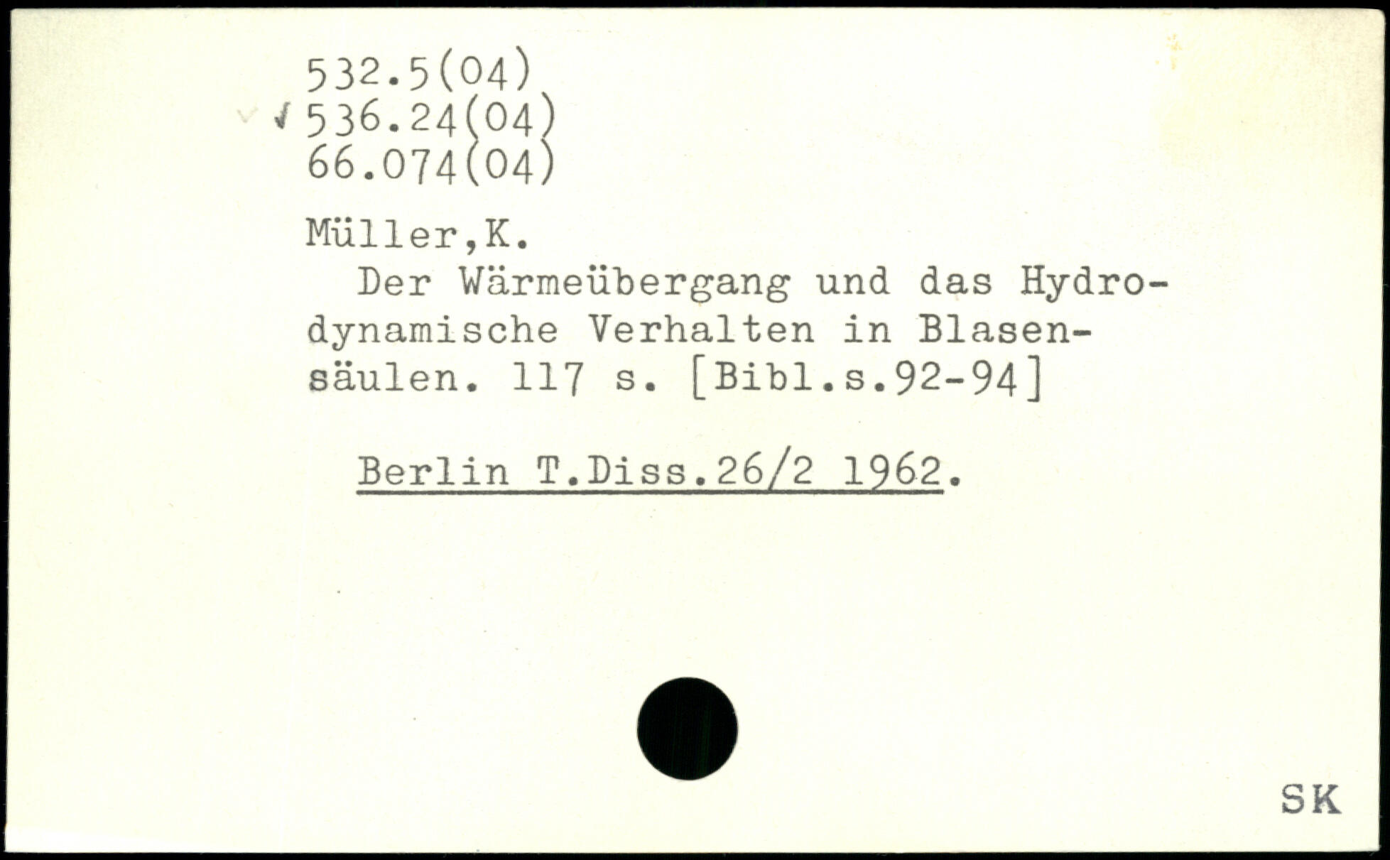 Der Wärmeübergang und das Hydrodynamische Verhalten in Blasensäulen.