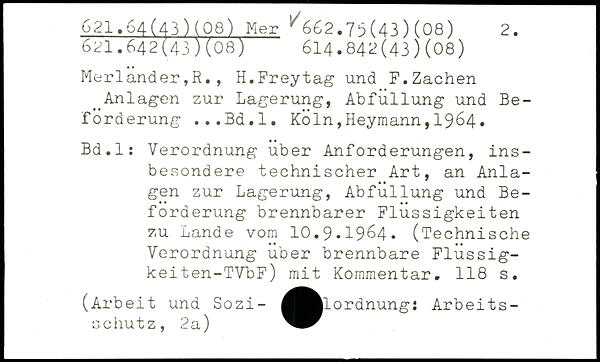 Merlander ,R. , H.Freytag und F.Zachen ^Anlagen zur Lagerung“, Abfüllung und Beförderung ...Bd.l.
