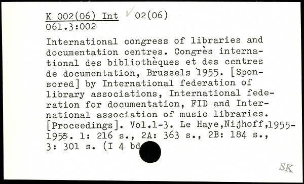 International congress of libraries and documentation centres. Congrès international des bibliothèques et des centres de documentation