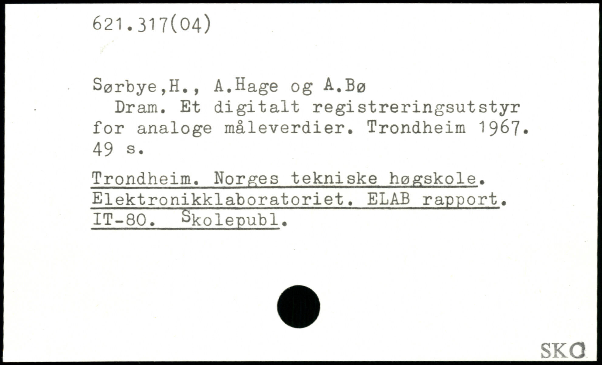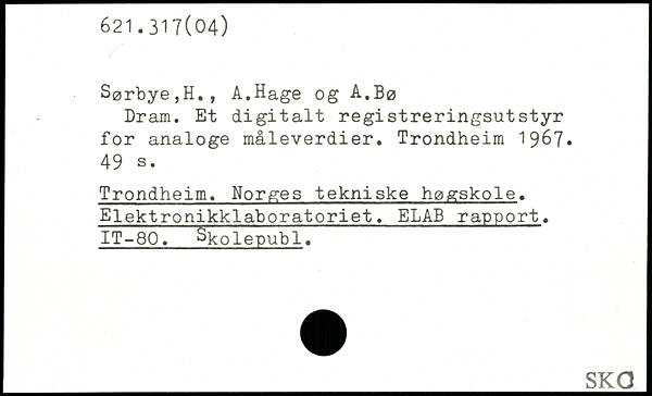Sørbye,H., A.Hage og A.Bø Dram. Et digitalt registreringsutstyr for analoge måleverdier.