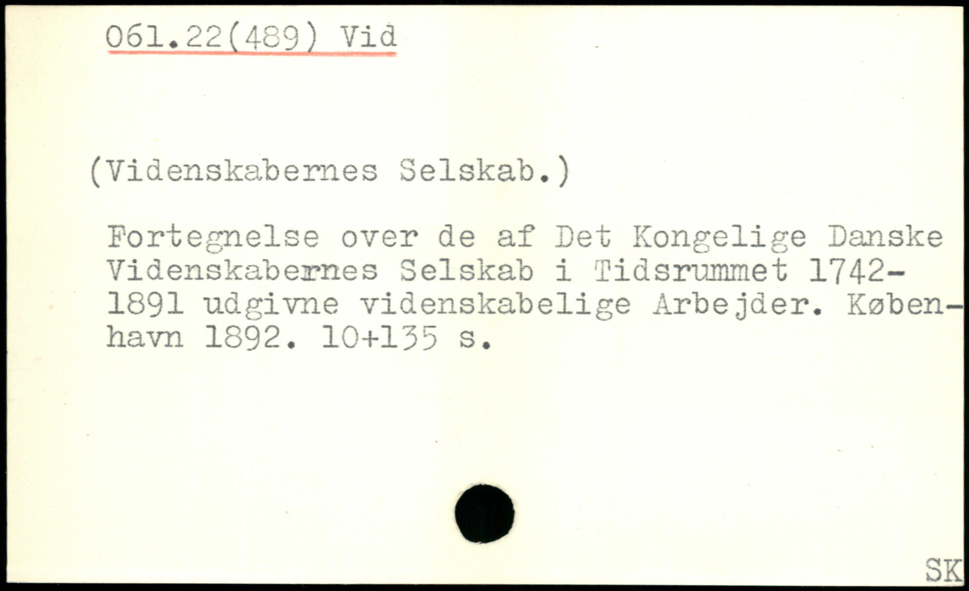 Fortegnelse over de af Det Kongelige Danske Videnskabernes Selskab i Tidsrummet 1742-