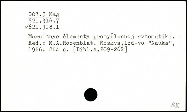 Magnitnye êlementy promyslennoj avtomatiki. Red.; M.A.Rozenblat. Moskva,Izd-vo "Nauka", 1966.
