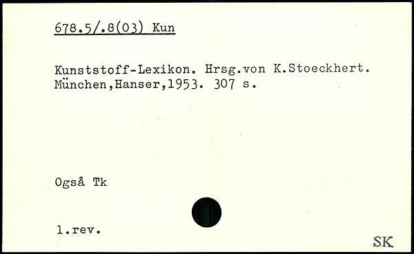 Kunststoff-Lexikon. Hrsg.von K.Stoeckhert.