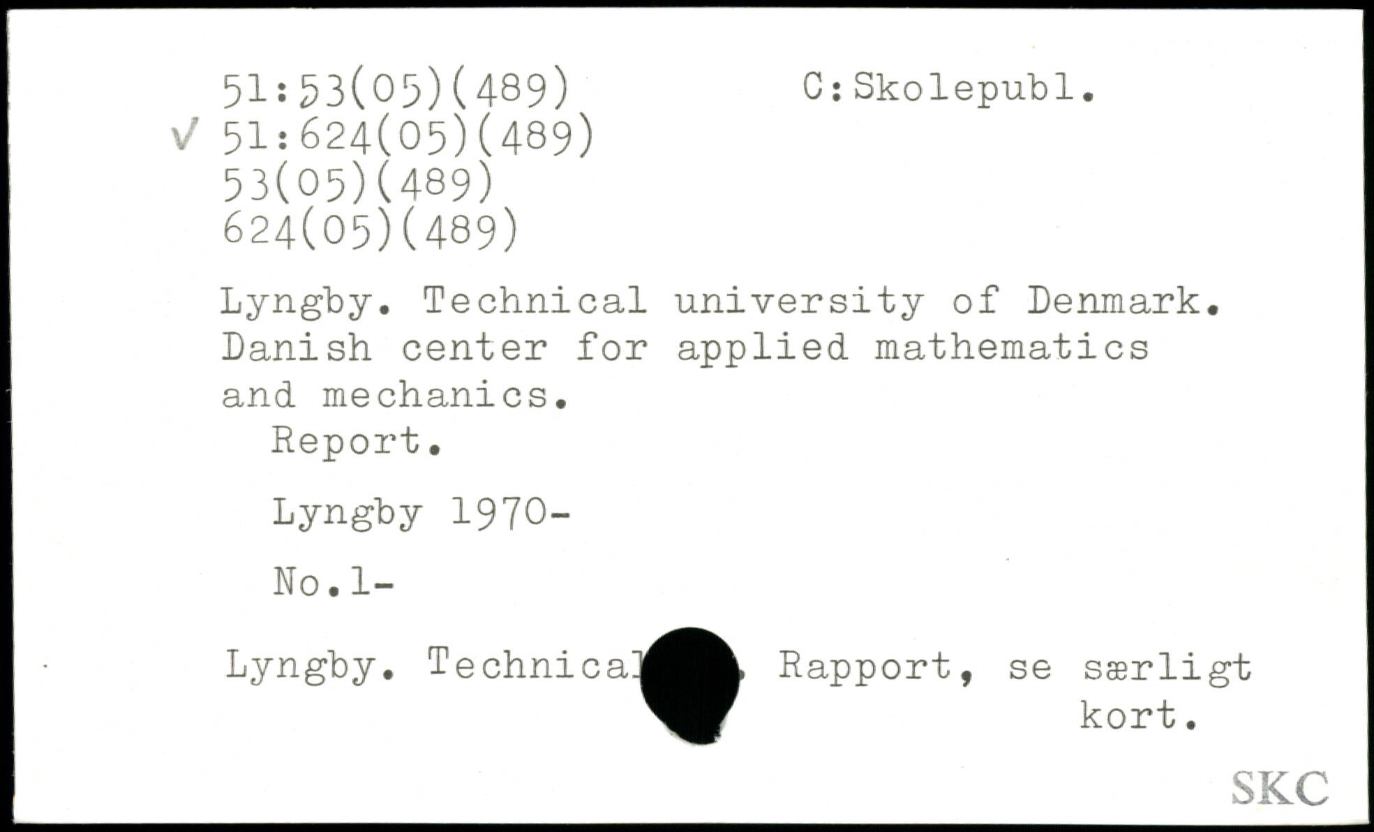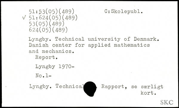 Lyngby. Technical university of Denmark. Danish center for applied mathematics and mechanics. Report. Lyngby 1970- No. 1- Lyngby. Technica!|^^^ Rapport, se særligt kort.
