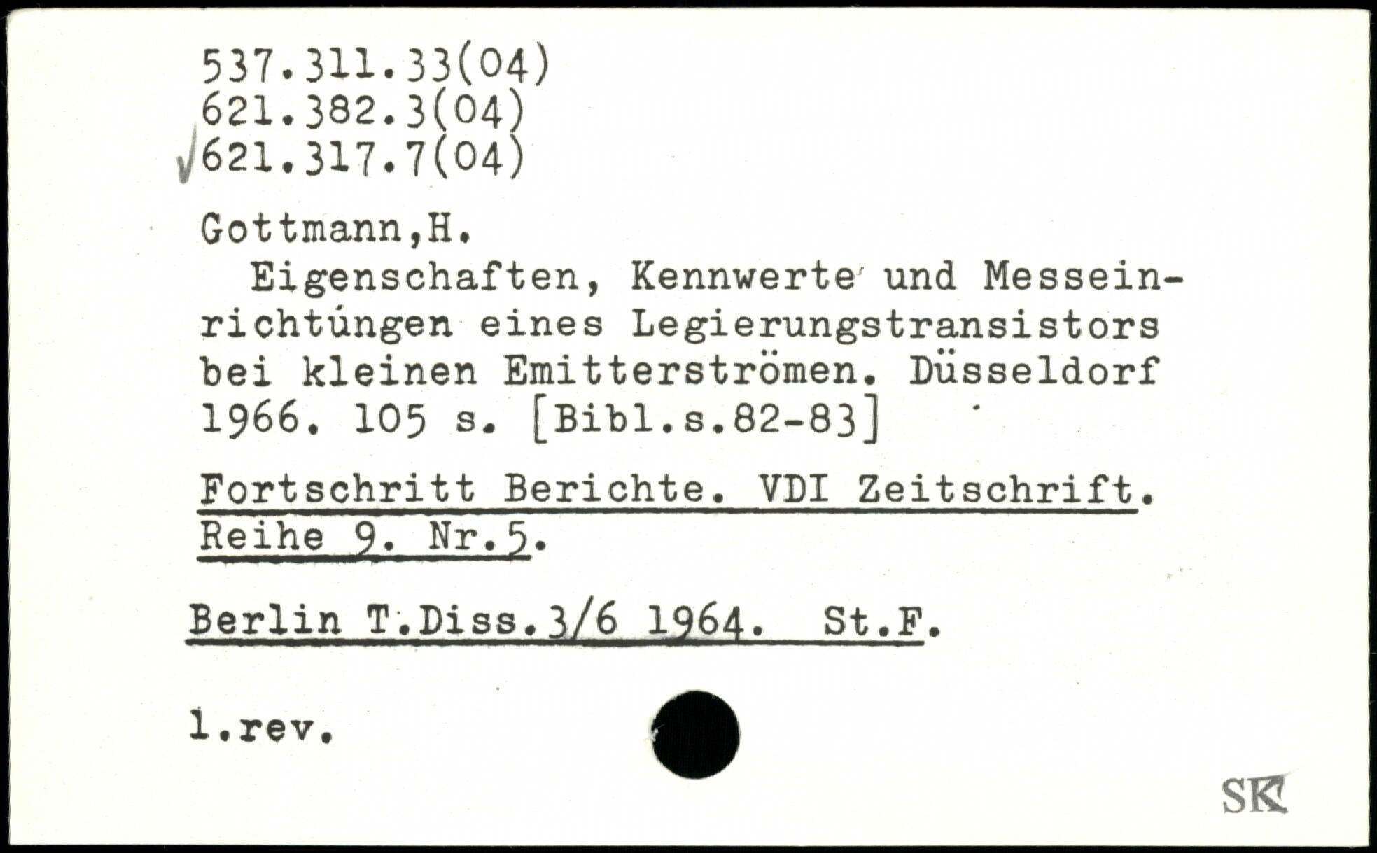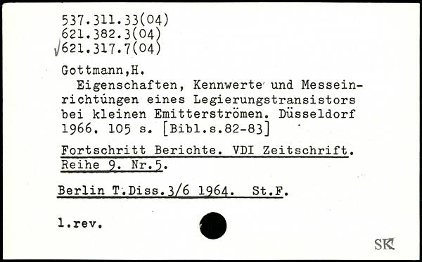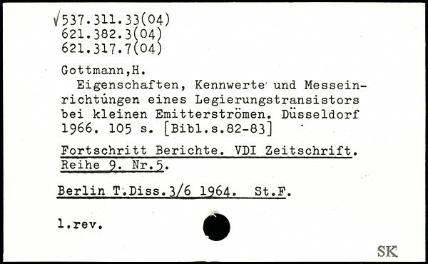 Eigenschaften, Kennwerte' und Messeinrichtungen eines Legierungstransistors bei kleinen Emitterströmen. Düsseldorf 1966.