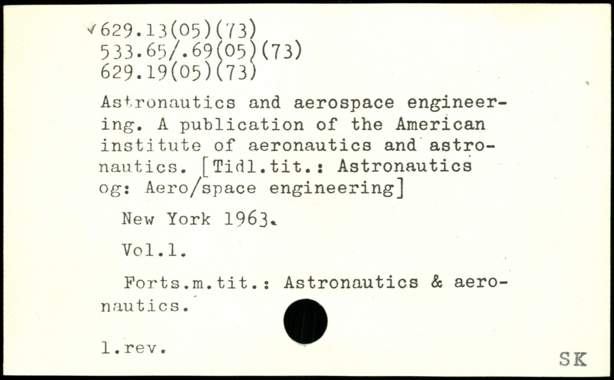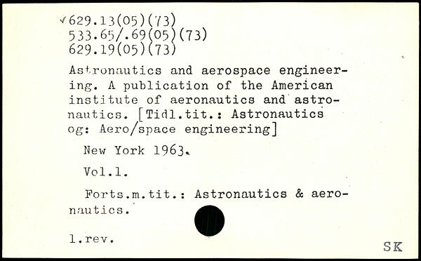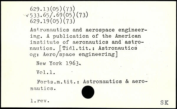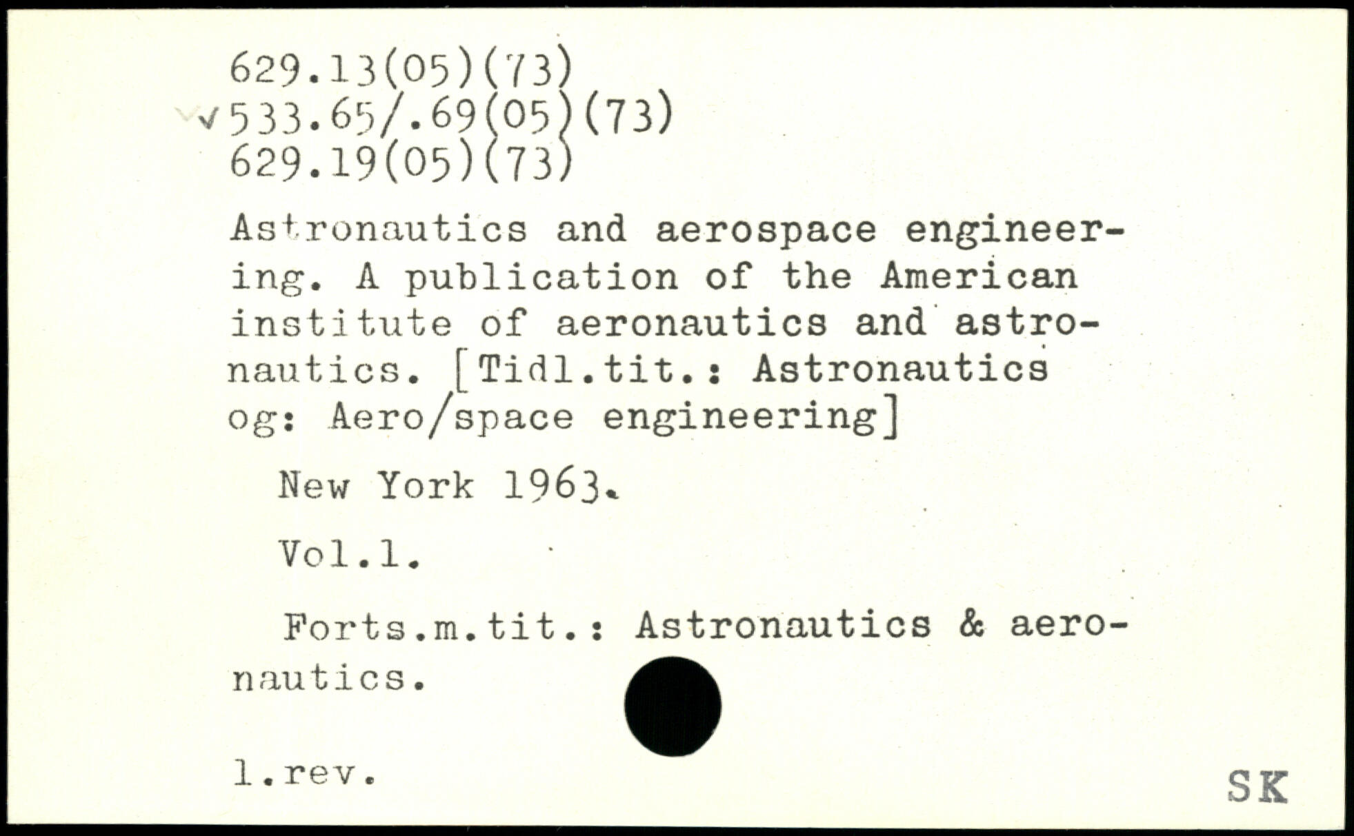 Astronautics and aerospace engineering. A publication of the American institute of aeronautics and astronautics. [Tidl.tit.s Astronautics og: Aero/space engineering]