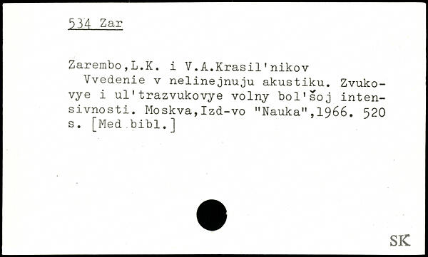 Zarembo,L.K. i V.A.Krasil,nikov Vvedenie v nelinejnuju akustiku. Zvuko-vye i ul'trazvukovye volny bol'soj inten-sivnosti. Moskva,Izd-vo "Nauka",1966.