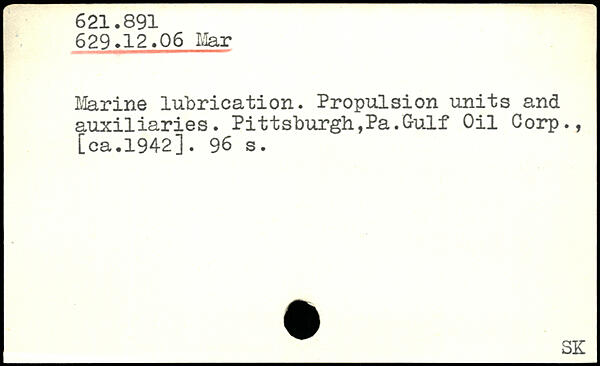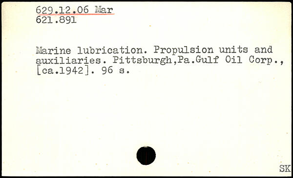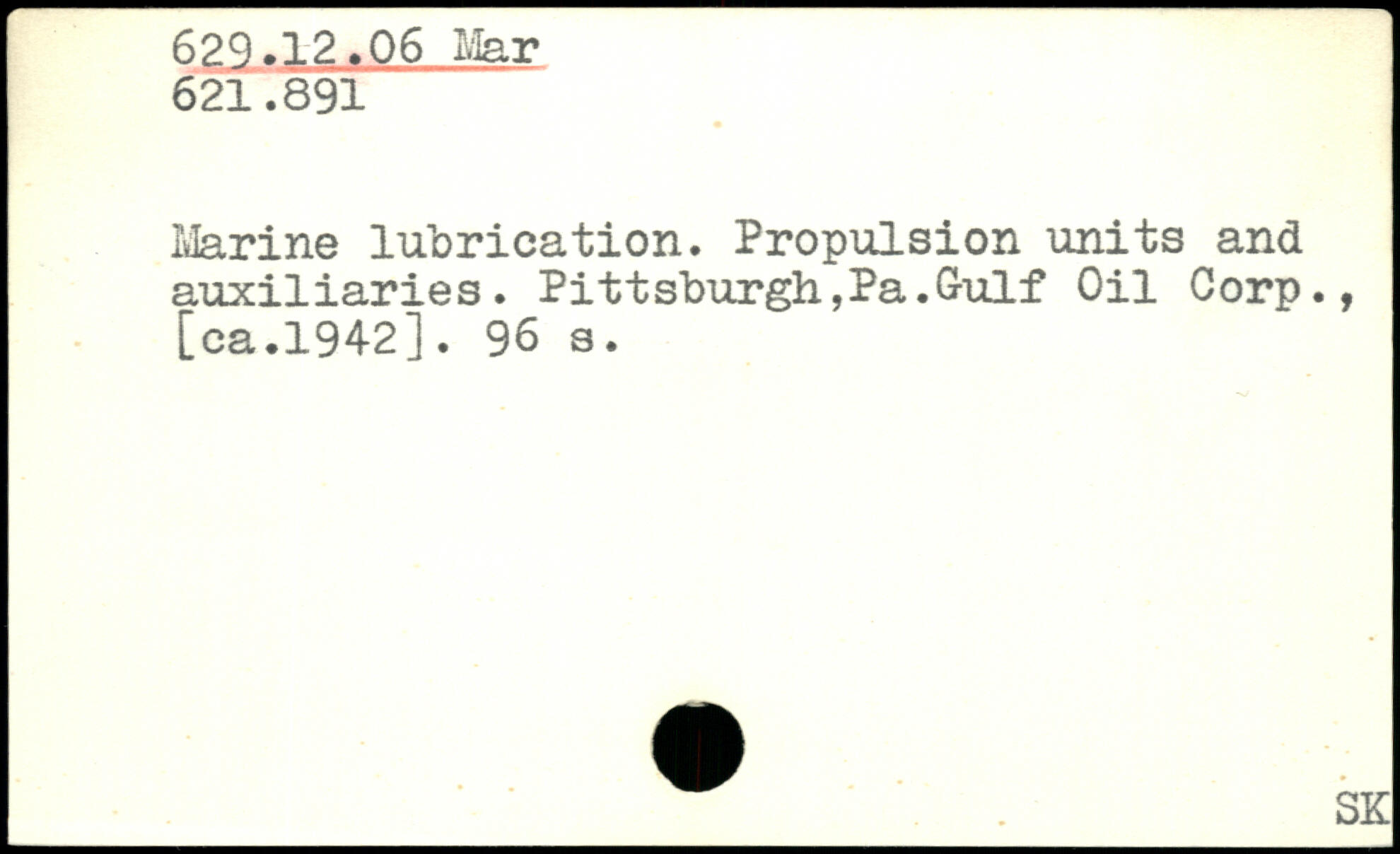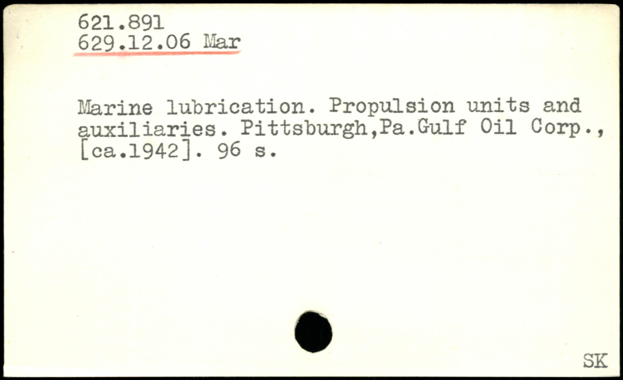 Marine lubrication. Propulsion units and auxiliaries. Pittsburgh,Pa.Gulf Oil Corp., [ca.1942].